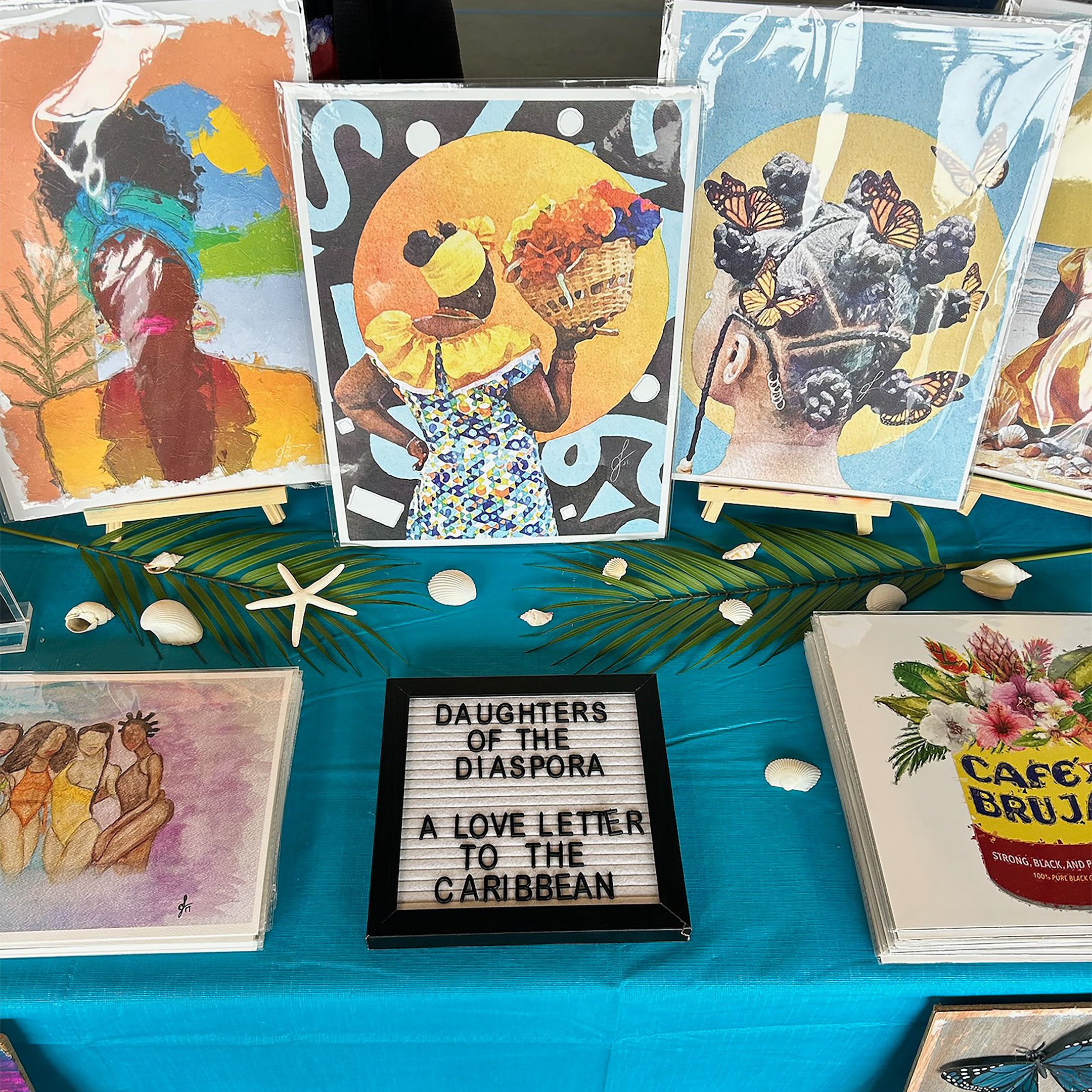 I recently showcased my art at the Black Girl Art Show in Brooklyn, where I dedicated my work to my mixed Caribbean heritage. I titled the collection “Daughters of the Diaspora: A Love Letter to the Caribbean.” Now, I’ve gathered my most popular designs and created an exclusive merchandise release featuring apparel and accessories. Check it out!